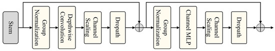 produced by the stem block first passes through the depthwise convolution-based MLP to produce an intermediate feature