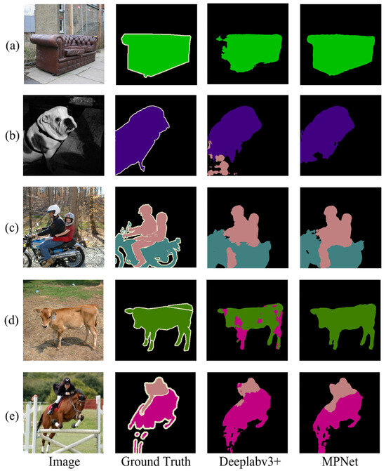 To overcome the limitation of insufficient multi-scale information utilization in DeepLabV3+, MPNet incorporates a novel multi-scale feature fusion structure by integrating the backbone network with the CFPNet. This structure simultaneously receives low-level, mid-level, and high-level features, and outputs fused low-level and fused high-level features. The fused high-level feature map is concatenated with the fused low-level feature map along the channel dimension after upsampling. Through this multi-scale fusion design, MPNet effectively solves the problem of the insufficient utilization of multi-scale information in DeepLabV3+.
