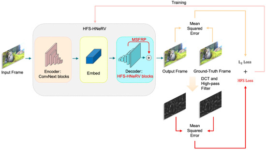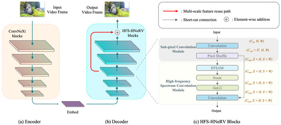 Figure 3a,b show the overall structure of the HFS-HNeRV network. In Section 3.1, we will explain the structure and function of the key parts in the HFS-HNeRV block. Section 3.2 is an introduction to MSFRP. Finally, the HFS loss function is described in Section 3.3.