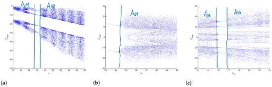 Bifurcation diagram: (a) Bhalekar–Gejji system; (b) Chen’s system; (c) 3D chaotic system.