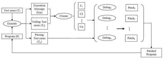 (6) Parallel Debugging: In the parallel debugging phase, clustering is first performed and then divided into clusters, with each cluster having a type of fault. Then, multiple developers can each be responsible for debugging a type of fault simultaneously. In this way, each developer will only be responsible for one fault and will only locate and fix that fault. At the onset of each single-fault localization and repair process, the developer employs the metamorphic testing-based single-fault localization tool, METASFL, on the given independent test suite to perform fault localization and compute a suspiciousness ranking of program statements.