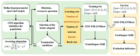 where denotes the fitness function. As shown in Figure 5, the process of optimizing the TSKANMixer model via the CEO algorithm can be briefly described as follows: