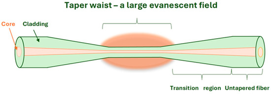 Mostly, the MFRs are based on tapered optical fibers (TOFs), which are characterized by a long and uniform tapered waist region having a diameter of several micrometers (Figure 1) [23,24,25].