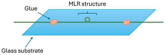 To mechanically stabilize and reinforce the MLR structure, it was secured onto a glass plate with a refractive index similar to that of the optical fiber approximately 1.46; Figure 4 [15]. Matching the refractive index of the glass substrate is important for minimizing additional optical losses. The refractive index of the surrounding medium is important due to the energy distribution in the TOF. If the refractive index is higher than the fiber, the losses increase (according to the principle of total internal reflection) [15]. The method used to secure the MLR structure did not introduce any measurable increase in loss.