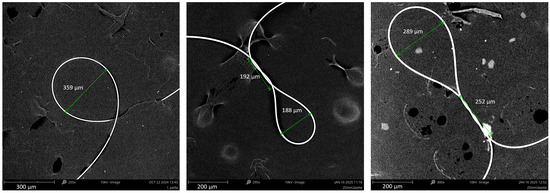 The MLR structures with different numbers of twists, based on TOFs with a 25 mm elongation, are shown in Figure 5. Their parameters, such as the loop radius and coupling length ΔL, were measured using a scanning electron microscope, model G2, Phenom (Waltham, MA, USA).