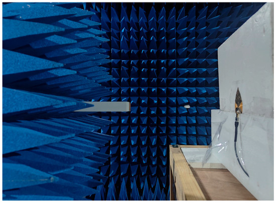 The scene of the near-field testing of the leaf-shaped antenna in the microwave anechoic chamber.