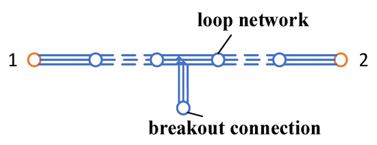 As shown in Figure 1, the 110 kV transmission line routing planning incorporates both the loop network configuration and the ‘3T’ connection scheme—the development to accurately represent real-world grid expansion scenarios. Here, 1 and 2 represent node 1 and node 2 respectively. In this framework, the 110 kV network employs the ‘3T’ connection configuration as illustrated in the diagram, with breakout connections evolving from the existing 110 kV network infrastructure. The specific routing constraints for 110 kV lines are as follows: