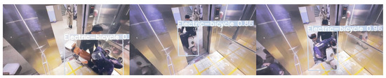 In the dataset, we collected both continuous and discrete images. For the continuous dataset, as Figure 7 we took pictures of the dataset from three different angles: front, side, and back of the e-bike, which not only increases the number of datasets, but also simulates the different postures of the e-bike entering the elevator and improves the detection to the accuracy in practical use.