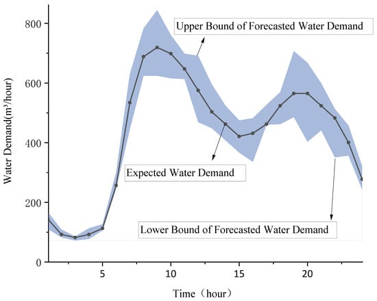 | Predicted or expected water demand at node i in the water distribution network at time t | |