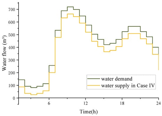 Equation (4) represents the flow-balance constraint at nodes in the WDN. It enforces the principle of mass conservation, ensuring that , the total water inflow to node i at time t, is equal to , the total outflow. This is fundamental for proper water distribution system operation.