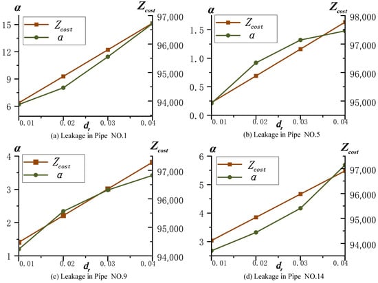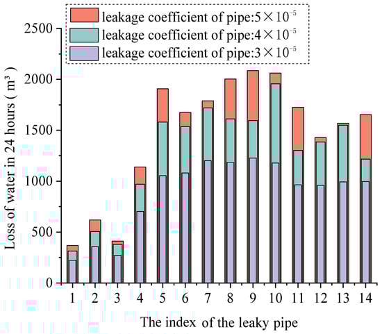 Water leakage is a prevalent phenomenon in the management of WDN, causing considerable loss of water and energy from the moment that the leaks are formed. The relationship between the leakage rate and water head can be formulated by an exponential function as shown in Equation (11) below [30].