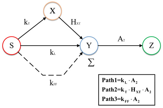 Because there are no independent feedback loops external to these forward paths, Mason’s formula simplifies to the sum of all forward-path gains as follows: