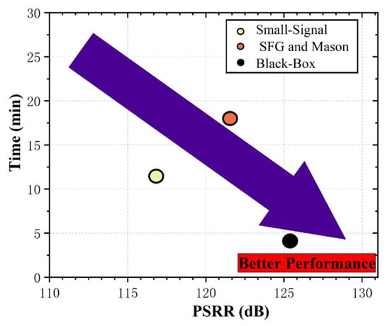 Using this metric, designers can quantitatively evaluate low-frequency noise rejection and intuitively assess the high-frequency suppression bandwidth, thus allowing for a systematic optimization of power supply noise performance. We can intuitively express which factors are related to the performance of the circuit’s PSRR in the mid- and low-frequency bands. After the initial simulation, we can quickly modify certain parameters to further improve the PSRR performance of the target frequency band while ensuring that other performance metrics meet the design requirements in each frequency band. Therefore, the introduction of PGB helps researchers to further optimize the performance of certain parameters in the early stages of complex circuit design.