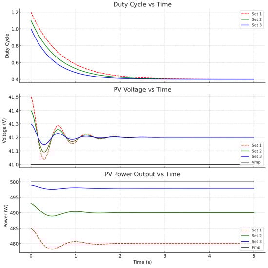 The controller operates independently of grid-side dynamics, focusing solely on the DC side of the system to track the Maximum Power Point (MPP) by adjusting the duty cycle of the DC-DC converter. The observed reduction in current distortion (i.e., lower THD) is a result of the controller’s ability to produce smooth and stable PWM signals, which lead to cleaner switching behavior when passed through the inverter. Nonetheless, it is important to acknowledge that in practical grid-connected applications—particularly in microgrids or weak grids—the current injected into the grid is also affected by external disturbances such as voltage fluctuations, load switching, and impedance mismatches. Therefore, while the controller contributes to improved power quality, its ability to minimize THD is not solely determined by its own design but also influenced by real-time grid conditions. Future experimental validation should thus account for such factors to provide a more holistic evaluation of current distortion under realistic grid behavior.