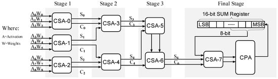 - Panda, A.K.; Palisetty, R.; Ray, K.C. High-speed area efficient VLSI architecture of three-operand binary adder. IEEE Trans. Circuits Syst. Regul. Pap. 2020, 67, 3944–3953. [Google Scholar] [CrossRef]