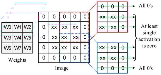 - Liu, M.; He, Y.; Jiao, H. Efficient zero-activation-skipping for on-chip low-energy CNN acceleration. In Proceedings of the 2021 IEEE 3rd International Conference on Artificial Intelligence Circuits and Systems (AICAS), Washington, DC, USA, 6–9 June 2021; pp. 1–4. [Google Scholar]