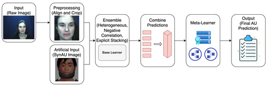 Our AU recognition method uses a heterogeneous, negative correlation, explicit stacking ensemble as defined by previous surveys [