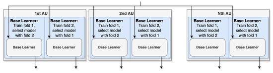 24], while our ensemble is a heterogeneous, negative correlation, stacking ensemble with multiple base learners. In addition, previous use of an MoE in AU recognition used the MoE in the traditional sense, with the MoE as the full model [