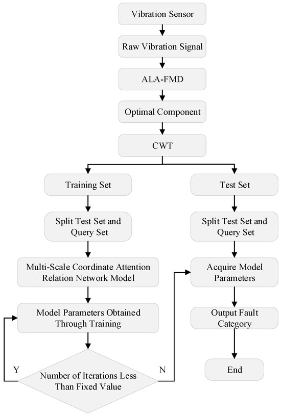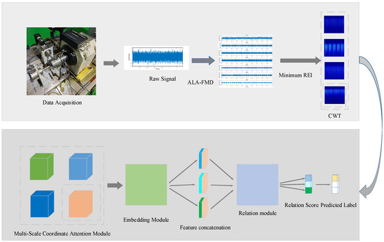 The fault diagnosis process of the multi-scale coordinate attention relational network is illustrated in Figure 4.