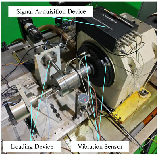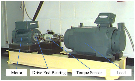 To validate the noise reduction effect of ALA-FMD and the classification performance of the MSCA-RN model, this paper employs the Case Western Reserve University (CWRU) bearing dataset [25] to verify the proposed fault diagnosis method. The test rig is illustrated in Figure 5. The dataset was collected using acceleration sensors with SKF6205 (SKF Corporation, Gothenburg, Sweden) bearings at a sampling frequency of 12 kHz. It encompasses four load conditions, 0 hp, 1 hp, 2 hp, and 3 hp, with corresponding motor speeds set at 1797, 1772, 1750, and 1730 r/min, respectively. The four bearing conditions utilized in the experiment are classified as normal class (NC), inner ring Fault (IF), outer ring fault (OF), and rolling body fault (RF), with a fault diameter of 0.178 mm. The types of bearing fault data employed in the experiment are presented in Table 1.