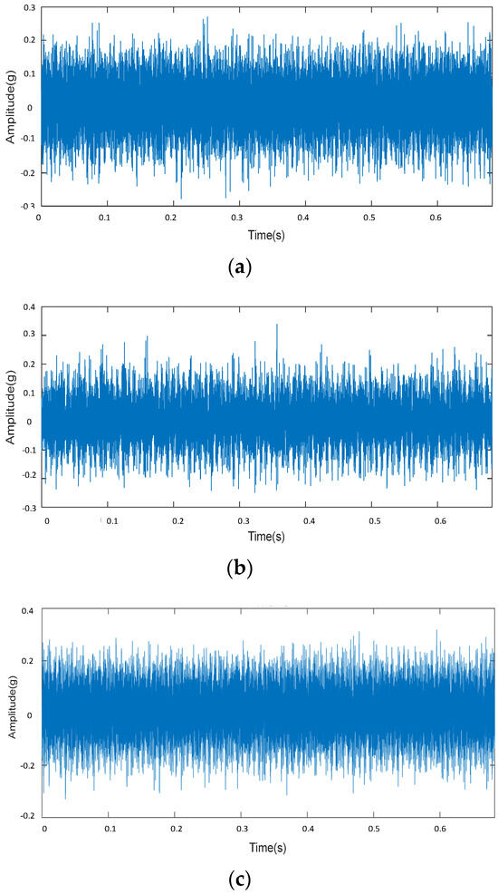 Original signal of bearing dataset: (a) inner ring fault signal; (b) outer ring fault signal; (c) rolling body fault signal.