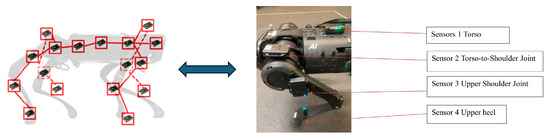 Strategic placements of IMU sensors on a quadruped.