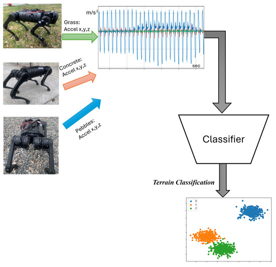 - Allred, C.; Russell, M.; Harper, M.; Pusey, J. Improving Methods for Multi-Terrain Classification Beyond Visual Perception. In Proceedings of the Fifth IEEE International Conference on Robotic Computing (IRC), Taichung, Taiwan, 15–17 November 2021; pp. 96–99. [Google Scholar] [CrossRef]