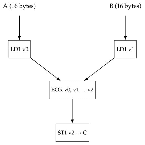 NEON supports a wide range of operations, including arithmetic, bitwise logic, shift, and memory access instructions. For instance, the EOR instruction performs element-wise bitwise XOR across all vector lanes, while LD1 and ST1 enable efficient aligned memory loads and stores. These vectorized operations are particularly advantageous in cryptographic primitives where parallelism is abundant—such as in matrix addition, polynomial multiplication, and S-box layers.