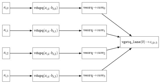 To accelerate these operations, we implement all inner loops using NEON intrinsics. Table 4 contains the following instructions that form the core of our multiplication kernel: