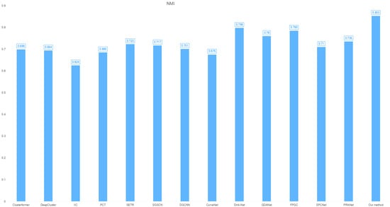 Normalized Mutual Information (NMI): Measures label consistency between predicted clusters and ground truth [0, 1] range (higher values indicate better alignment). The calculation formulas are as follows: