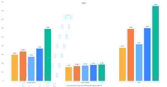 - Except for the heart disease dataset, removing the feature aggregation module leads to a notable reduction in the NMI value.