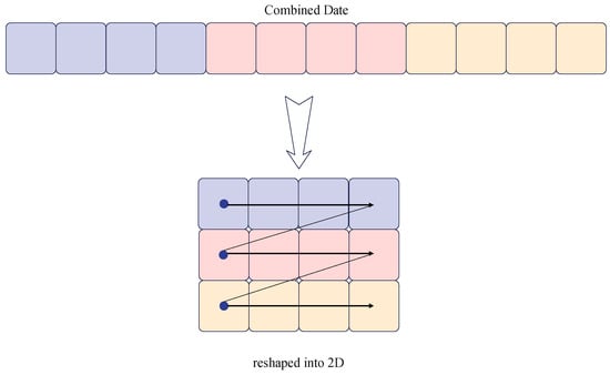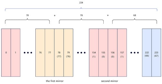 The 224 × 78 matrix is expanded to a 224 × 224 matrix through mirror reflection, which involves mirroring the original sequence to the right of the original matrix until it fills the target 224 columns. This method preserves the original data, achieving a lossless dimensionality increase and avoiding the loss of nonlinear relationships that can occur with other methods, such as linear interpolation. Additionally, mirror reflection prevents edge artifacts, making it suitable for time series or spatial data. The expansion process is illustrated in Figure 2.