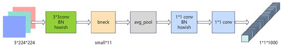 MobileNetV3 [8] has excellent computing efficiency and high precision. Considering the strict real-time requirements of this scenario, the study adopts MobileNetV3-Small, a version of the model with a lighter weight, more compact structure, and lower computing delay, as the basic architecture, as shown in Figure 4.