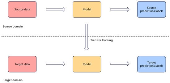 As shown in Figure 6, transfer learning is a key research direction in the fields of machine learning and deep learning [31]. Its core principle involves leveraging the knowledge gained from the source task to enhance the performance of the target task [32]. In the transfer learning framework, there are typically differences between the source domain and the target domain, as well as between the source task and the target task, in terms of data distribution, feature space, or objectives. Knowledge transfer mechanisms facilitate cross-domain knowledge sharing and adaptation. Model fine-tuning is one of the commonly used techniques, in which pre-trained model parameters from the source task are used as initial weights, and the model is trained on the target task to make focused adjustments, enabling the model to quickly adapt to new task requirements. Studies have shown [33] that compared to training from scratch with randomly initialized parameters, the fine-tuning strategy can significantly accelerate model convergence and effectively improve the model’s accuracy and generalization ability.