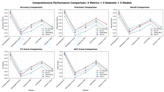 Figure 10 shows the ROC curves and corresponding AUC values of the five models on the CIC-IDS2018 dataset.