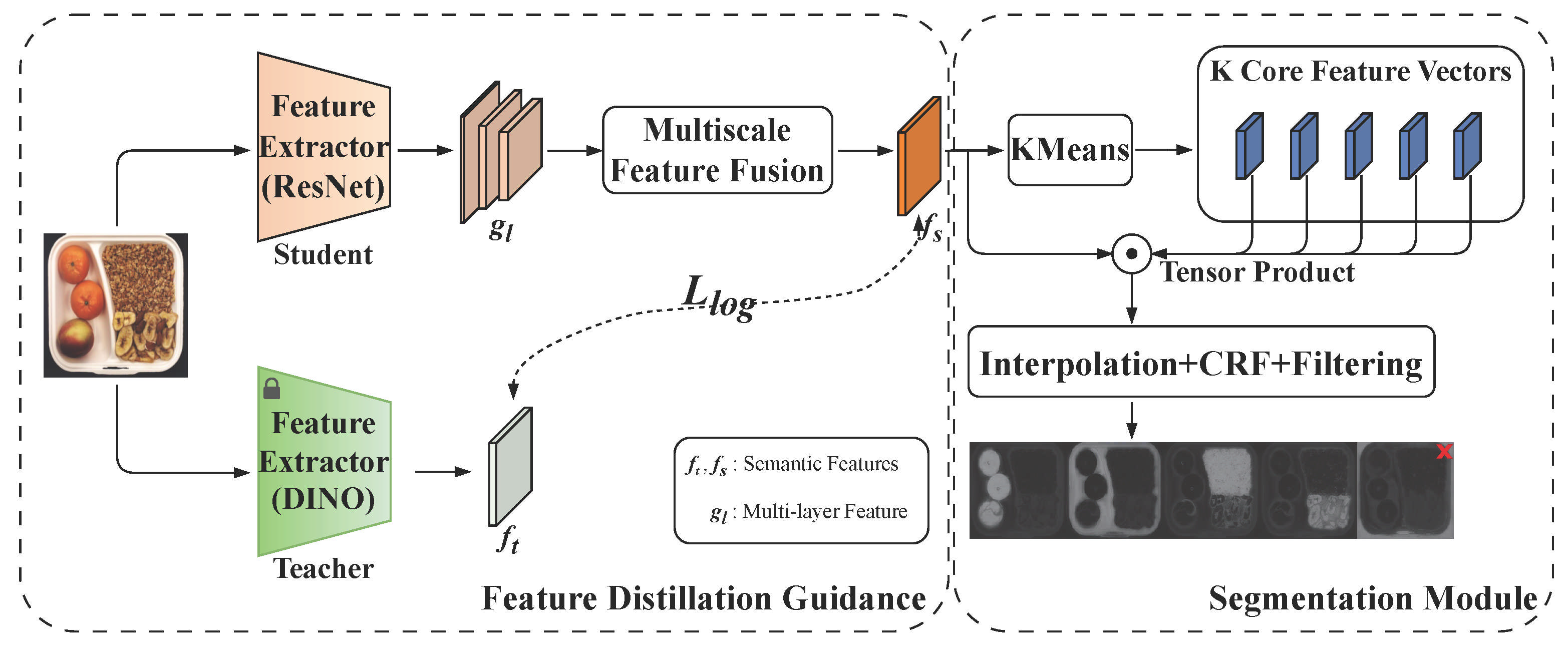 Segmentation Module. After the feature distillation process, the features extracted by ResNet can now be utilized to construct segmentation maps. As illustrated in the segmentation module in