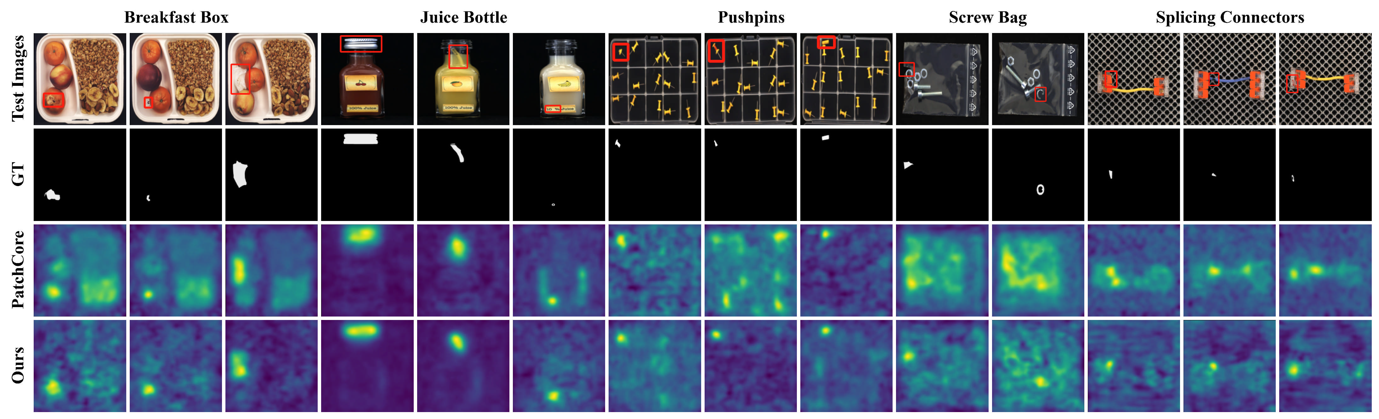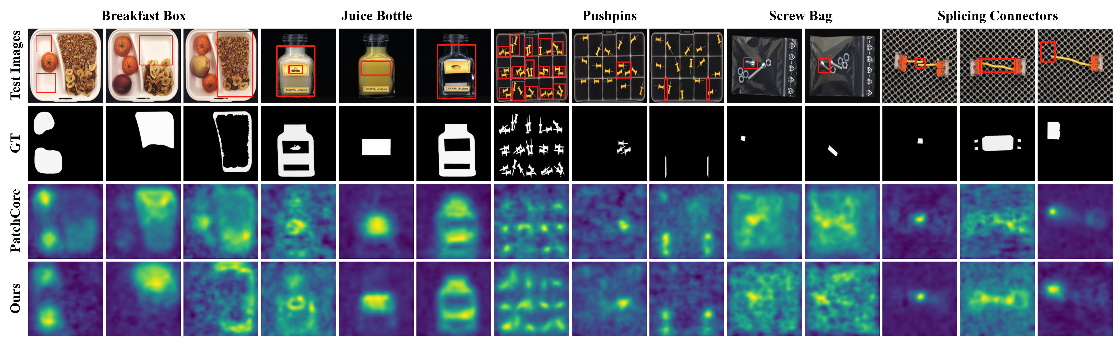 Aggregation of Anomaly Scores. The anomaly scores derived from the two memory banks originate from different feature spaces and calculation methods, leading to inherent differences in their numerical scales and distributions. Directly summing these uncalibrated scores would cause the score with the larger inherent scale to dominate the aggregated result, potentially masking the signal from the other anomaly type. This imbalance would compromise the accuracy of the final anomaly score. To ensure that both scores contribute proportionally to the final result based on their respective deviation magnitudes, we first normalize both scores, and the final aggregated anomaly score