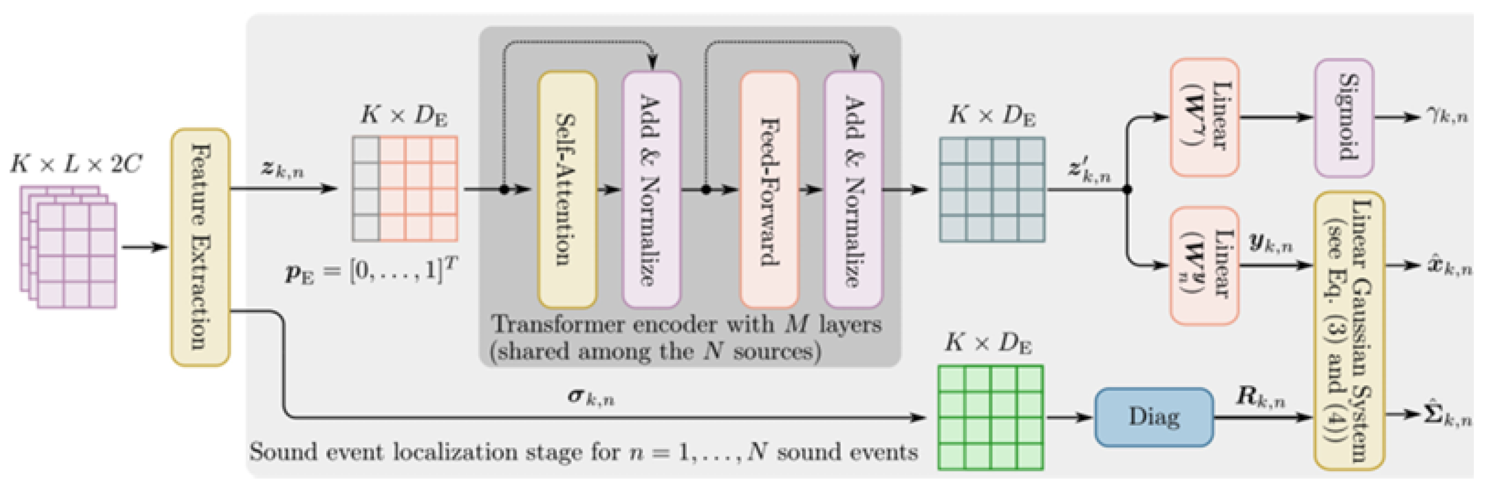 - Tracking losses: Incorporates Differentiable CLEAR-MOT–inspired dMOTp and dMOTa as auxiliary training losses. These metrics are specifically designed to improve the model’s ability to consistently track sources over time, minimizing ID switches and localization errors for moving or overlapping events.