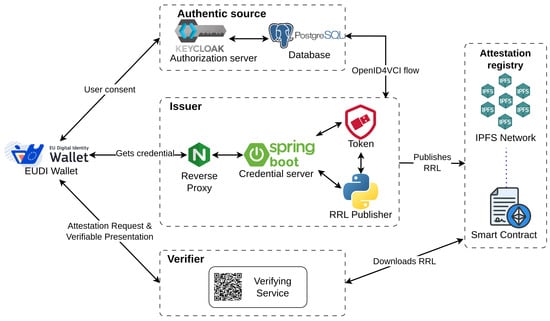 - ARF—EUDI Wallet Ecosystem. Available online: https://eu-digital-identity-wallet.github.io/eudi-doc-architecture-and-reference-framework/1.7.1/architecture-and-reference-framework-main/#3-eudi-wallet-ecosystem (accessed on 15 April 2025).