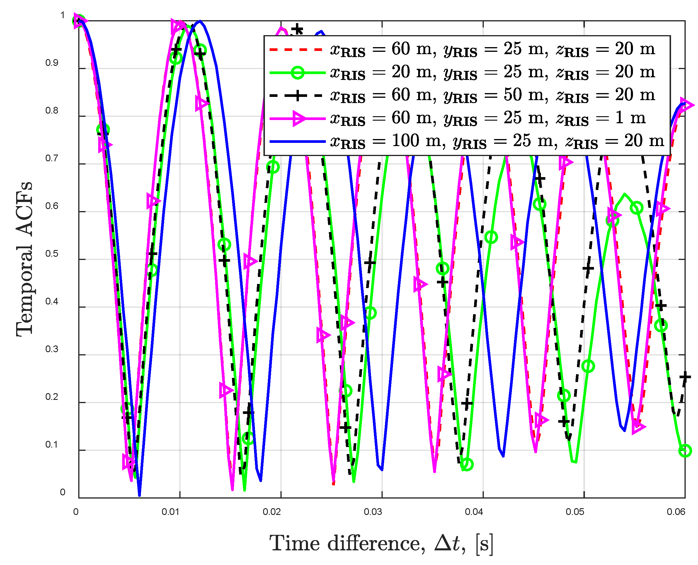 - Through comprehensive simulations, we demonstrate that RIS deployment positions and various other variables critically influence ST CCF and temporal ACF performance. Our findings provide actionable insights for RIS-aided V2V system design.