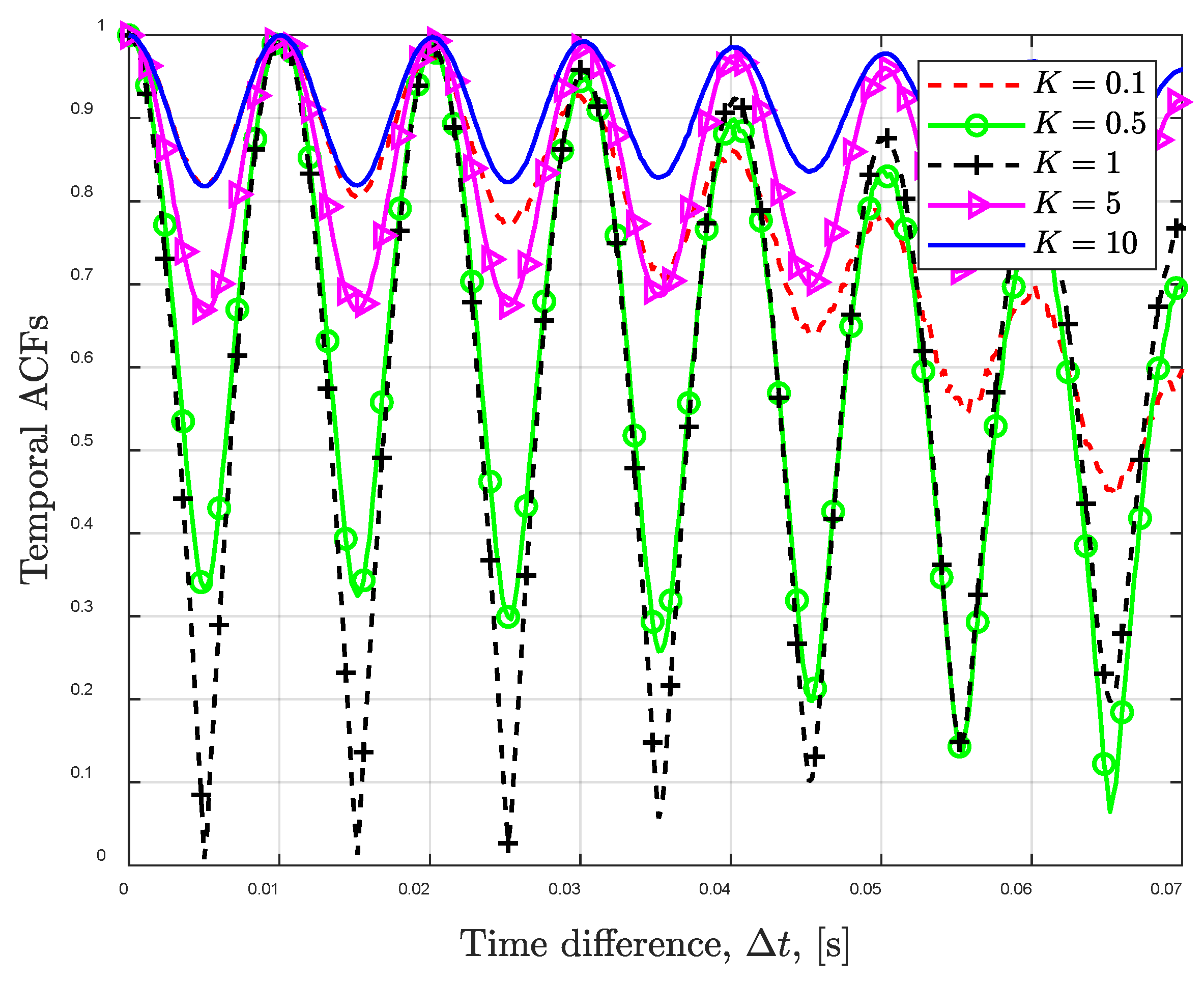 - Yuan, Y.; Wang, C.; Yang, Y.; Li, Y.; Ge, X. 3D geometry-based vehicle-to-vehicle channel modeling with dual mobility. IEEE Trans. Veh. Technol. 2020, 69, 8329–8343. [Google Scholar]