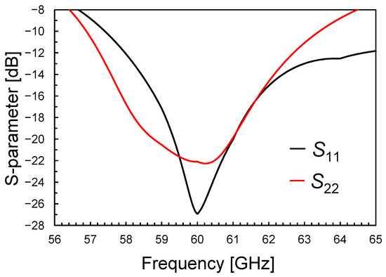 Input (S11) and output (S22) matching versus frequency.