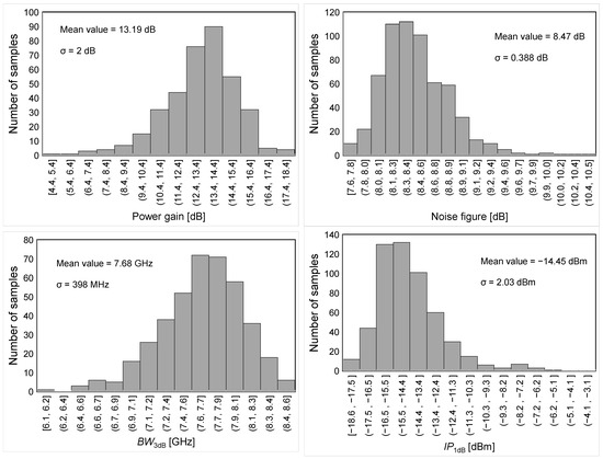 MC-simulated results for main LNA performance parameters.