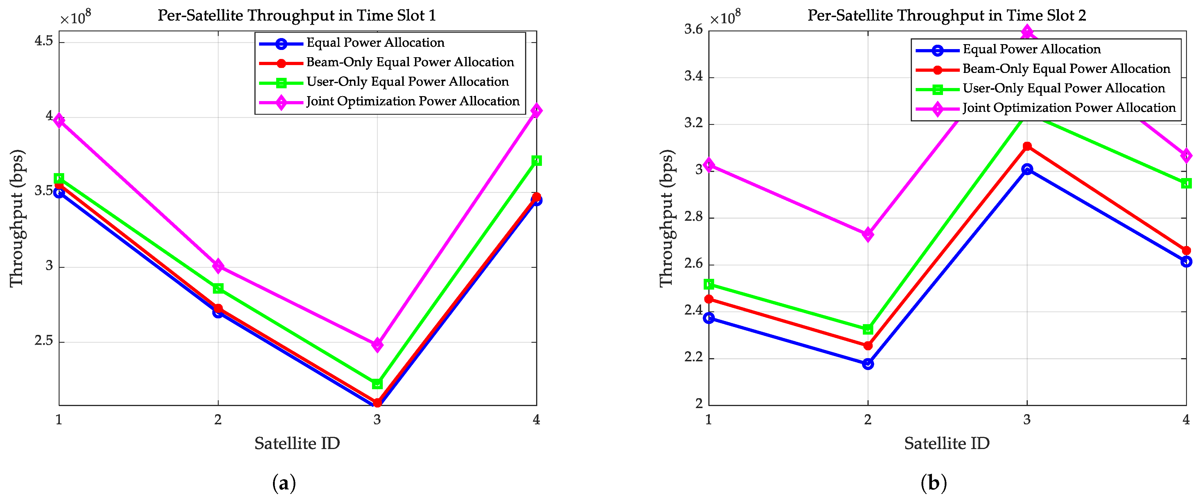- Du, X.; Hu, X.; Wang, Y.; Wang, W. Dynamic resource allocation for beam hopping satellites communication system: An exploration. In Proceedings of the 2022 IEEE International Conference on Trust, Security and Privacy in Computing and Communications (TrustCom), Wuhan, China, 9–11 December 2022; pp. 1296–1301. [Google Scholar] [CrossRef]