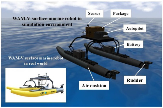 In this study, the proposed RRT-GPMP2 algorithm is validated in two self-constructed complex mazes in simulations. To further validate its practicability, an additional test is conducted using a surface marine robot in a high-fidelity maritime simulation environment based on the Robot operating system (ROS). A demonstration of the selected surface marine robot in ROS is provided in Figure 1.