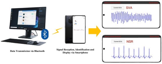 Recent advances in electronic technology—particularly in low-power microprocessors, flexible sensors, and wireless modules—have accelerated the application of wearable devices for continuous vital sign monitoring [,]. Miniaturized ECG front-end chips and photoplethysmography sensors now enable high-precision, high-sampling-rate data collection in compact devices [,]. Simultaneously, edge computing platforms like ARM Cortex-M series MCUs and AI inference accelerators support real-time signal processing and basic diagnostic tasks [], making large-scale, continuous monitoring feasible [].