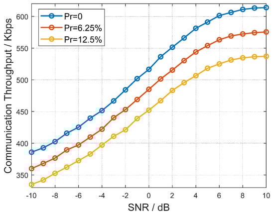 Figure 11 illustrates the relationship between communication rate and SNR under different redundancy ratios. The SNR curves remain identical across different redundancy ratios, indicating that redundancy does not affect the BER performance of communication but only reduces throughput. Moreover, the reduction in throughput is directly related to the redundancy ratio. In practical applications, a trade-off between communication rate and detection performance should be considered to achieve optimal performance in different scenarios.