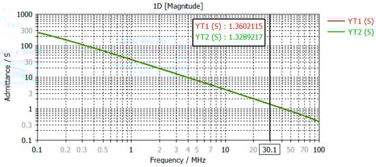 The Y and Z matrices also enable evaluation of symmetry in the layout by comparing the admittance seen by each device in a parallel configuration. For instance, Figure 4 shows the admittance seen by the two devices forming switch U3. The results indicate a high degree of symmetry, with only minor differences. These discrepancies are primarily due to asymmetries in the device packaging—specifically, the source pins layout influenced by the gate and Kelvin source connection—which slightly alters the surrounding copper plane geometry (see Figure 3).