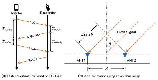 UWB systems enable high-precision positioning by combining ToF-based ranging with AoA estimation. When a UWB initiator is equipped with an antenna array, it can estimate both the distance and direction to a transmitting device, allowing accurate positioning using only a single initiator.