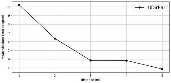 In this subsection, we describe the experiments conducted to verify the performance and robustness of UDirEar and present the corresponding results. The main experiment compares the performance of UDirEar with that of MUSE, demonstrating the better performance of our approach. Subsequent experiments examine the influence of dummy head–initiator distance, elapsed time, the inclusion of EKF filtering, and NLoS conditions on performance.